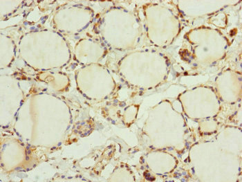Immunohistochemistry of paraffin-embedded human thyroid tissue using CSB-PA024459ESR2HU at dilution of 1:100