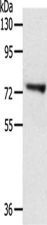 Gel: 8%SDS-PAGE, Lysate: 40 μg, Lane: Lovo cells, Primary antibody: CSB-PA956978(TRIM32 Antibody) at dilution 1/200, Secondary antibody: Goat anti rabbit IgG at 1/8000 dilution, Exposure time: 30 minutes