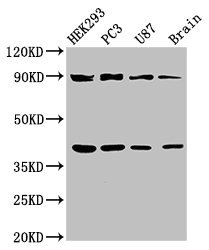 Positive WB detected in: HEK293 whole cell lysate, PC-3 whole cell lysate, U87 whole cell lysate, Rat brain tissue
