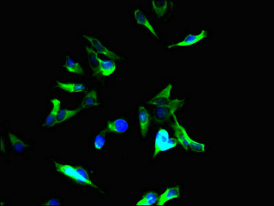 Immunofluorescent analysis of Hela cells using CSB-PA343033LA01HU at dilution of 1:100 and Alexa Fluor 488-congugated AffiniPure Goat Anti-Rabbit IgG(H+L)