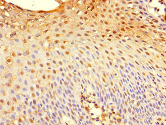 Immunohistochemistry of paraffin-embedded human tonsil tissue using CSB-PA860343LA01HU at dilution of 1:100