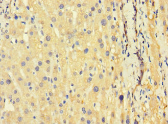 Immunohistochemistry of paraffin-embedded human liver cancer using CSB-PA860343LA01HU at dilution of 1:100