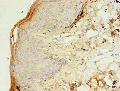 Immunohistochemistry of paraffin-embedded human skin tissue using CSB-PA025164LA01HU at dilution of 1:100