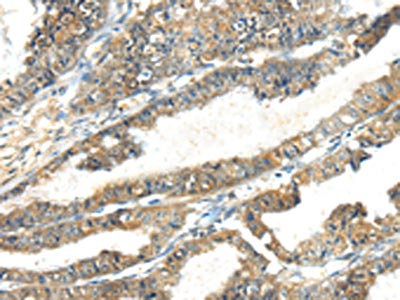 The image on the left is immunohistochemistry of paraffin-embedded Human prostate cancer tissue using CSB-PA281274(TSPYL6 Antibody) at dilution 1/20, on the right is treated with synthetic peptide. (Original magnification: ×200)