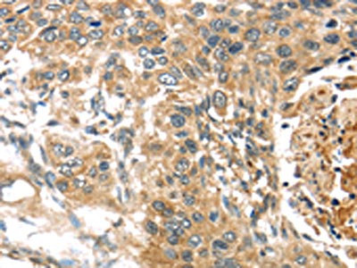 The image on the left is immunohistochemistry of paraffin-embedded Human esophagus cancer tissue using CSB-PA570383(TTI1 Antibody) at dilution 1/40, on the right is treated with synthetic peptide. (Original magnification: ×200)