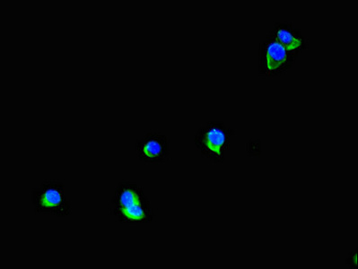 Immunofluorescent analysis of Hela cells using CSB-PA012188LA01HU at dilution of 1:100 and Alexa Fluor 488-congugated AffiniPure Goat Anti-Rabbit IgG(H+L)