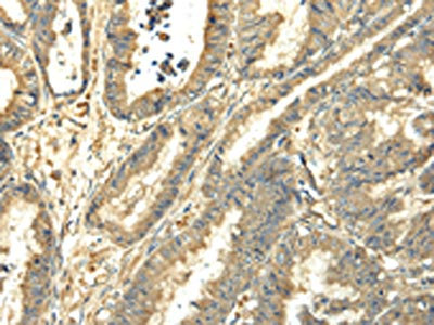 The image on the left is immunohistochemistry of paraffin-embedded Human prostate cancer tissue using CSB-PA067976(TUBA1C Antibody) at dilution 1/25, on the right is treated with fusion protein. (Original magnification: ×200)