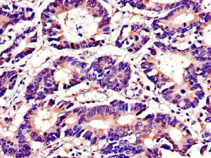 • Immunohistochemistry of paraffin-embedded human colon cancer using CSB-PA09499A0Rb at dilution of 1:100