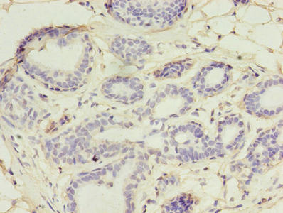 Immunohistochemistry of paraffin-embedded human breast cancer using CSB-PA025443DA01HU at dilution of 1:100