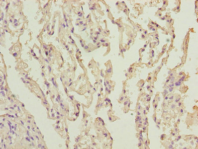 Immunohistochemistry of paraffin-embedded human lung tissue using CSB-PA00474A0Rb at dilution of 1:100