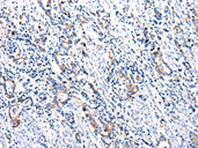 The image is immunohistochemistry of paraffin-embedded Human stomach cancer tissue using CSB-PA779618(UTS2 Antibody) at dilution 1/100. (Original magnification: ×200)