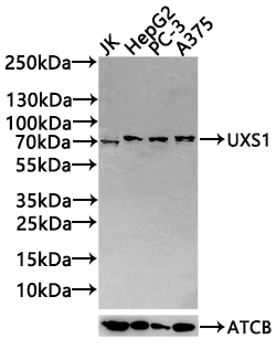 Positive WB detected in: JK whole cell lysate(20μg), HepG2 whole cell lysate(20μg), PC-3 whole cell lysate(20μg), A375 whole cell lysate(20μg)
