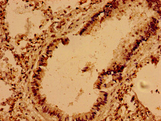 Immunohistochemistry of paraffin-embedded human lung tissue using CSB-PA025785LA01HU at dilution of 1:100