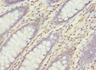 Immunohistochemistry of paraffin-embedded human colon cancer using CSB-PA848385ESR1HU at dilution of 1:100