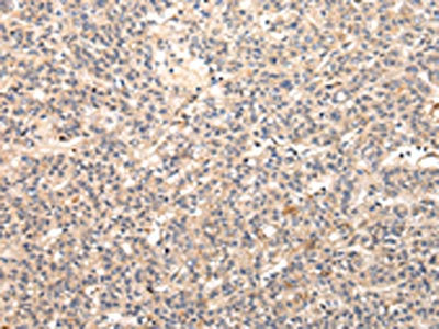 The image on the left is immunohistochemistry of paraffin-embedded Human prostate cancer tissue using CSB-PA903091(VIP Antibody) at dilution 1/20, on the right is treated with fusion protein. (Original magnification: ×200)