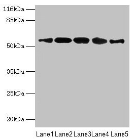 Predicted band size: 58, 52 kDa