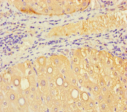 Immunohistochemistry of paraffin-embedded human liver tissue using CSB-PA800218LA01HU at dilution of 1:100