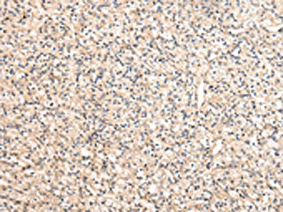 The image on the left is immunohistochemistry of paraffin-embedded Human prostate cancer tissue using CSB-PA947382(VPS33B Antibody) at dilution 1/40, on the right is treated with fusion protein. (Original magnification: ×200)