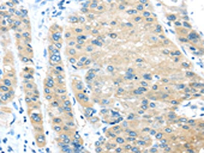 The image on the left is immunohistochemistry of paraffin-embedded Human liver cancer tissue using CSB-PA940983(VPS4A Antibody) at dilution 1/25, on the right is treated with synthetic peptide. (Original magnification: ×200)