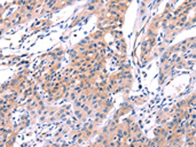 The image on the left is immunohistochemistry of paraffin-embedded Human lung cancer tissue using CSB-PA195869(VWF Antibody) at dilution 1/50, on the right is treated with fusion protein. (Original magnification: ×200)