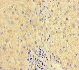 Immunohistochemistry of paraffin-embedded human liver cancer using CSB-PA861133HA01HU at dilution of 1:100