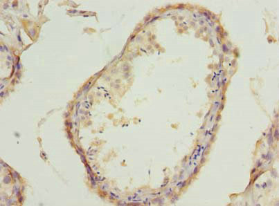 Immunohistochemistry of paraffin-embedded human testis tissue using CSB-PA872416LA01HU at dilution of 1:100