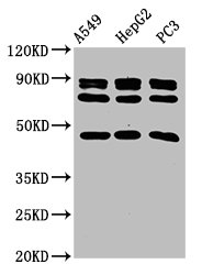 Positive WB detected in: A549 whole cell lysate, HepG2 whole cell lysate, PC-3 whole cell lysate