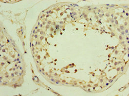 Immunohistochemistry of paraffin-embedded human testis tissue using CSB-PA896882ESR2HU at dilution of 1:100