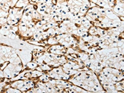 The image on the left is immunohistochemistry of paraffin-embedded Human renal cancer tissue using CSB-PA556296(YBX1 Antibody) at dilution 1/15, on the right is treated with synthetic peptide. (Original magnification: ×200)