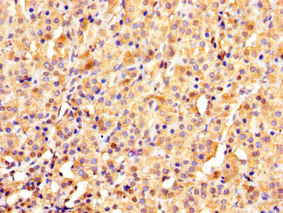 IHC image of CSB-PA026287DA01HU diluted at 1:1000 and staining in paraffin-embedded human adrenal gland tissue performed on a Leica BondTM system. After dewaxing and hydration, antigen retrieval was mediated by high pressure in a citrate buffer (pH 6.0). Section was blocked with 10% normal goat serum 30min at RT. Then primary antibody (1% BSA) was incubated at 4°C overnight. The primary is detected by a biotinylated secondary antibody and visualized using an HRP conjugated SP system.