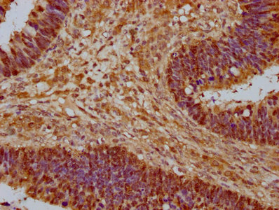 IHC image of CSB-PA01459A0Rb diluted at 1:1000 and staining in paraffin-embedded human pancreatic cancer performed on a Leica BondTM system. After dewaxing and hydration, antigen retrieval was mediated by high pressure in a citrate buffer (pH 6.0). Section was blocked with 10% normal goat serum 30min at RT. Then primary antibody (1% BSA) was incubated at 4°C overnight. The primary is detected by a biotinylated secondary antibody and visualized using an HRP conjugated SP system.