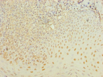Immunohistochemistry of paraffin-embedded human tonsil tissue using CSB-PA621889LA01HU at dilution of 1:100