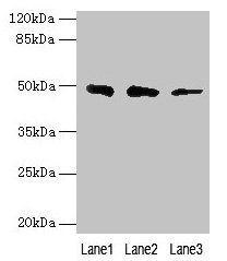 Predicted band size: 49 kDa