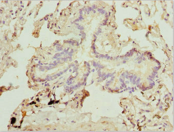Immunohistochemistry of paraffin-embedded human lung tissue using CSB-PA064019ESR2HU at dilution of 1:100