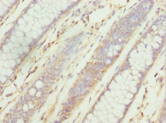 Immunohistochemistry of paraffin-embedded human colon cancer using CSB-PA026553ESR1HU at dilution of 1:100