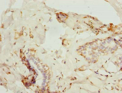 Immunohistochemistry of paraffin-embedded human breast cancer using CSB-PA026599LA01HU at dilution of 1:100