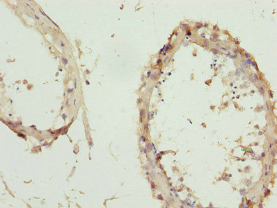 Immunohistochemistry of paraffin-embedded human testis tissue using CSB-PA026622ESR1HU at dilution of 1:100