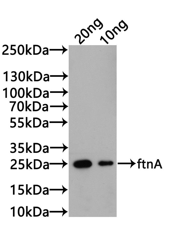 ftnA antibody is a rabbit polyclonal IgG specific for an epitope mapping between amino acids 1-167 within an internal region of Helicobacter pylori ftnA. This ftnA antibody is purified by protein A/G. It is recommended for the detection of Helicobacter pylori ftnA protein by ELISA and WB applications.