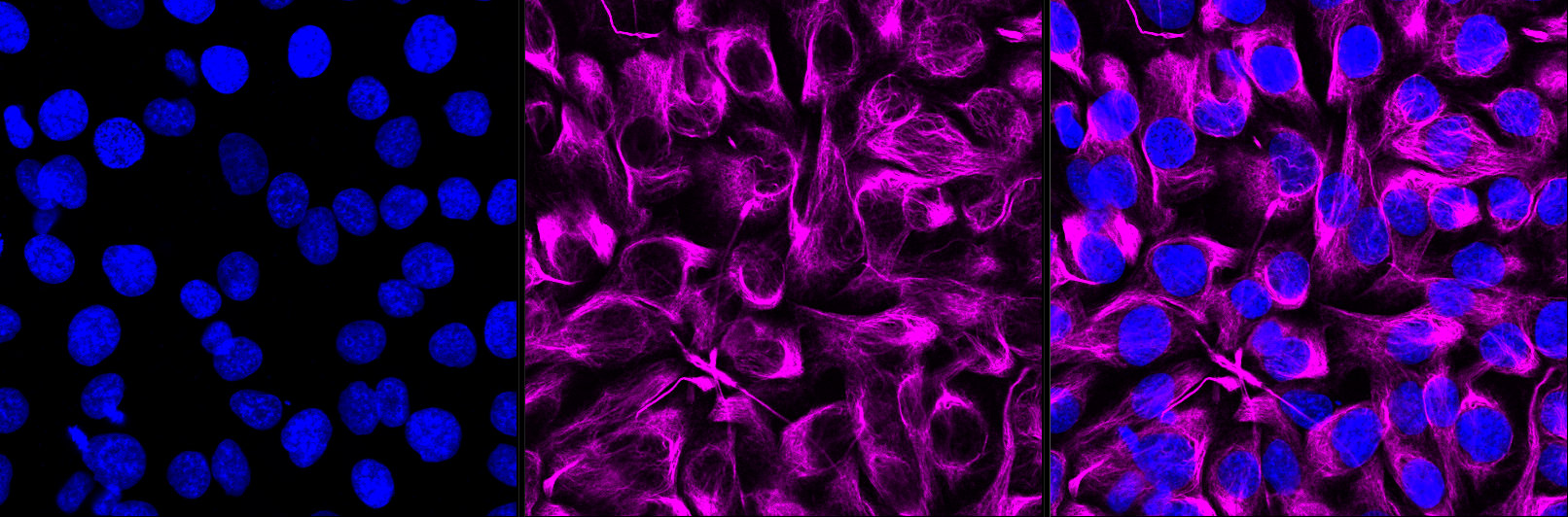 Immunocytochemical staining of HT-1080 cells with ACAP2 antibody. Nuclei were stained blue with DAPI; ACAP2 was stained magenta with Alexa Fluor? 647. Images were taken using Leica stellaris 5. Protein abundance based on laser Intensity and smart gain: High. Scale bar, 20 μm.