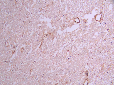 IHC image of CSB-RA163563A0HU diluted at 1:100 and staining in paraffin-embedded human glioma cancer performed on a Leica BondTM system. After dewaxing and hydration, antigen retrieval was mediated by high pressure in a citrate buffer (pH 6.0). Section was blocked with 10% normal goat serum 30min at RT. Then primary antibody (1% BSA) was incubated at 4°C overnight. The primary is detected by a Goat anti-rabbit polymer IgG labeled by HRP and visualized using 0.05% DAB.