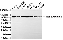 All lanes: ACTN4 antibody at 1:1000