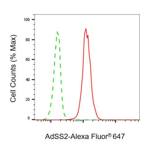 Flow cytometric analysis of AdSS 2 expression in C2C12 cells using AdSS2 antibody. Green, isotype control; red, AdSS 2.