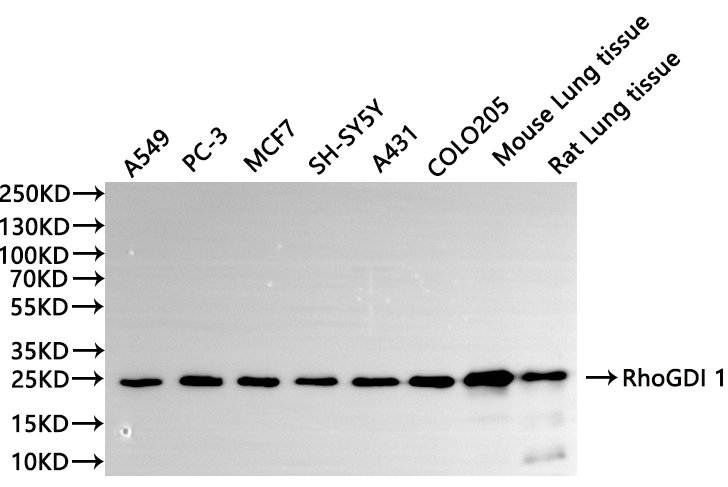 All lanes: RhoGDI 1 antibody at 1:1000