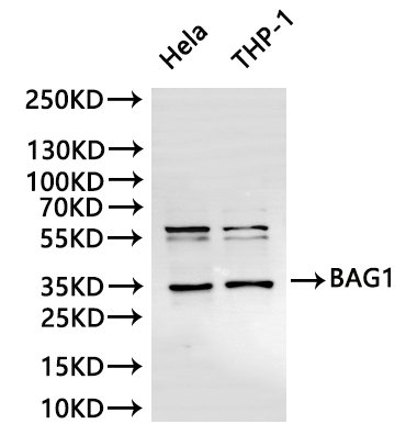 Positive WB detected in: Hela whole cell lysate(30μg), THP-1 whole cell lysate(30μg)