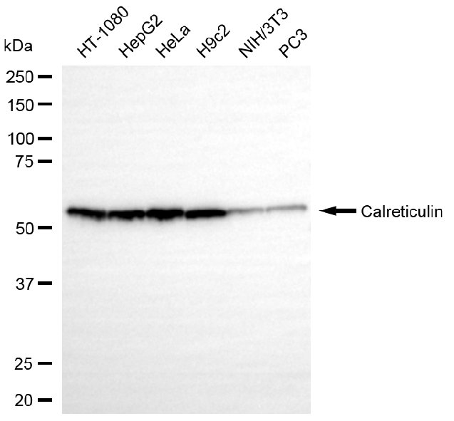 Western blotting analysis using calreticulin antibody. Total cell lysates (20 μg) from various cell lines were loaded and separated by SDS-PAGE. The blot was incubated with calreticulin antibody and HRP-conjugated goat anti-rabbit secondary antibody respectively.