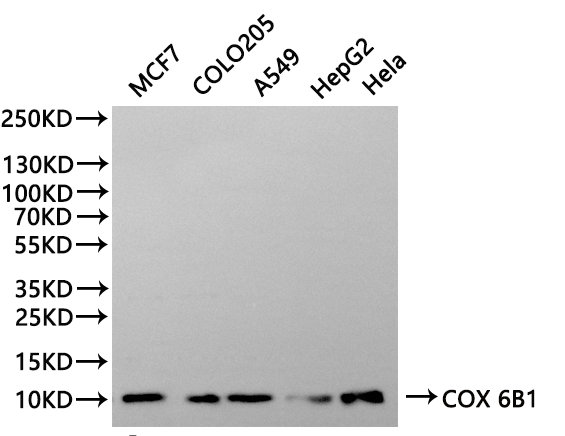別名:COX 6B antibody; COX VIb 1 antibody; COX VIb-1 antibody; COX6B antibody; COX6B1 antibody; COXG antibody; COXVIb1 antibody; CX6B1_HUMAN antibody; Cytochrome c oxidase subunit 6B1 antibody; Cytochrome c oxidase subunit VIb antibody; Cytochrome c oxidase subunit VIb isoform 1 antibody; cytochrome c oxidase subunit VIb polypeptide 1 (ubiquitous) antibody; Cytochrome c oxidase subunit Vib polypeptide 1 antibody