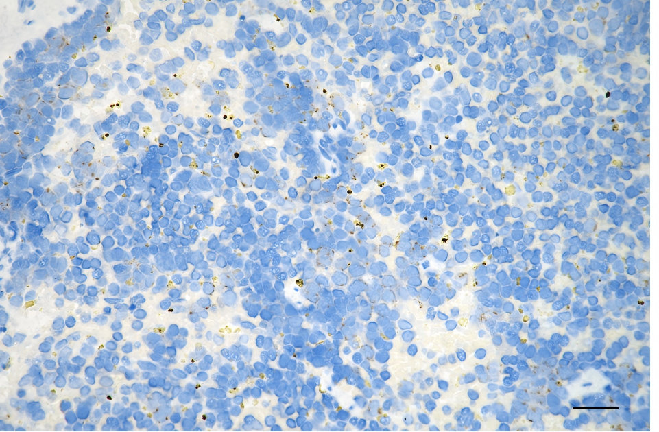 Immunohistochemistry was performed on paraffin-embedded human hepatocarcinoma using carbamoyl-phosphate synthase 1 antibody. Antigen retrieval was done in sodium citrate buffer (pH 6.0). DAB was used for detection, with hematoxylin counterstaining. Images were acquired using a Nikon Ci-L Plus microscope (40× objective). Scale bar: 25 μm.