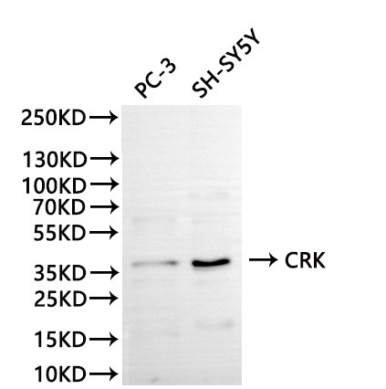 All lanes: CRK antibody at 1:1000