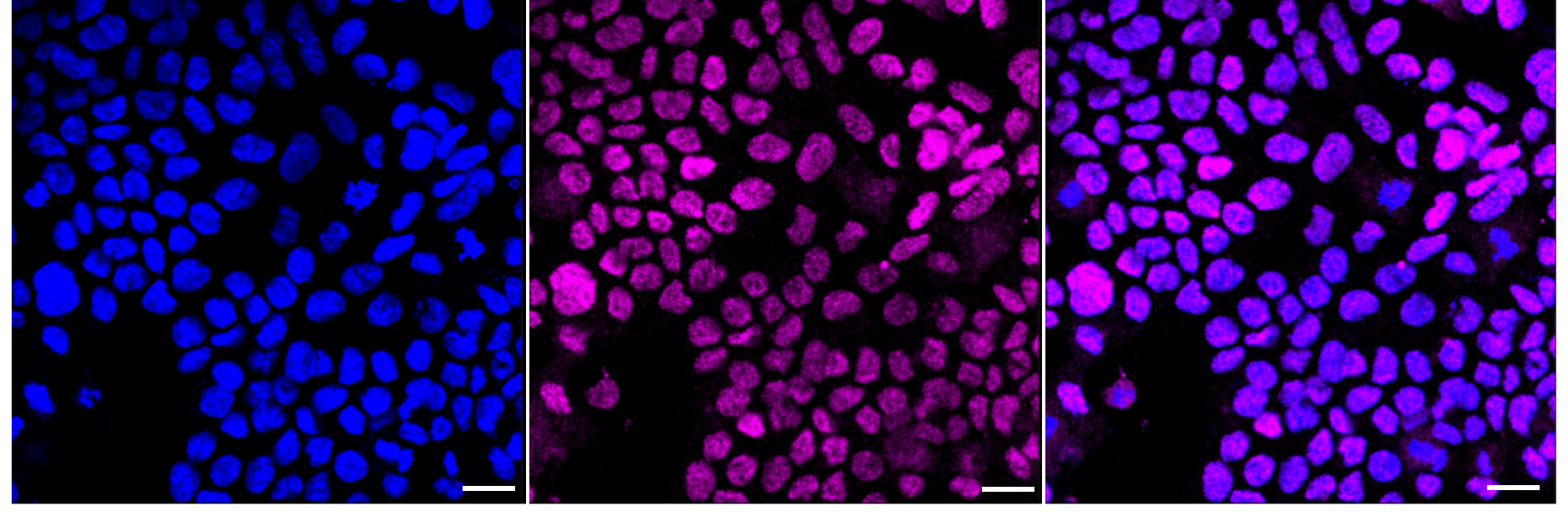 Immunocytochemical staining of HAP1 cells with C-terminal binding protein 1 antibody . Nuclei were stained blue with DAPI;C-terminal binding protein 1 was stained magenta with Alexa Fluor? 647. Images were taken using Leica stellaris 5. Protein abundance based on laser Intensity and smart gain: Medium. Scale bar, 20 μm.