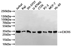 Positive WB detected in: Jurkat whole cell lysate(30μg), Raji whole cell lysate(30μg), SH-SY5Y whole cell lysate(30μg), U-87MG whole cell lysate(30μg), CT26 whole cell lysate(30μg), PC-3 whole cell lysate(30μg), MCF-7 whole cell lysate(30μg), HL-60 whole cell lysate(30μg)